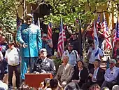 Before he retired, Petry stated his intention to spend more time with family, and to further his education.[19] On Veterans Day 2014, Petry was featured on The Concert for Valor.[20] In January 2015, Master Sergeant Jose Rodela and Petry attended the All-American Bowl in San Antonio.[21] In April 2015, Corporal Kyle Carpenter, and Petry, returned to Afghanistan where both addressed deployed servicemembers.[22] As part of paying tribute to Missing in Action/Prisoners of War, Petry completed a 10-day cross country Run For The Wall in May 2015.[23] In 2015 and 2016, fellow Medal of Honor recipients Meyer, and Clint Romesha, and Petry became involved in the movie Range 15.[24] In 2017, Petry was inducted into the Ranger Hall of Fame at Fort Benning.[25] During the 2016 United States presidential election, Petry endorsed the candidacy of Jeb Bush, then Donald Trump.[26] Working with non-profit organisations, Petry has escorted wounded veterans to return to Afghanistan, for Operation Proper Exit, more than a dozen times.[27] Along with fellow Medal of Honor recipient Florent Groberg, Petry works for a consulting company, Mission 6 Zero.[28]