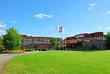 It's a relatively young school, founded as late as in 1980. The first school building was a converted bottle cap factory; since then the school area has grown into a small "campus" with several old and new buildings of varying style, all set in lush parkland.