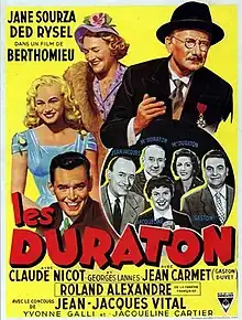 The Duratons (French: Les Duraton) is a 1955 French comedy film directed by André Berthomieu and starring Jane Sourza, Ded Rysel and Claude Nicot.[1] It was shot at the Boulogne Studios in Paris and on location in Senlis. The film's sets were designed by the art director Raymond Nègre. It was the second film to be based on the popular radio series The Duraton Family following the 1939 production The Duraton Family directed by Christian Stengel.[2]