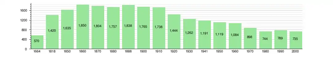 Les Verrières has a population (as of December 2020) of 646.[7] As of 2008, 5.1% of the population are resident foreign nationals.[8] Over the last 10 years (2000–2010) the population has changed at a rate of -10.1%. Migration accounted for -7.2%, while births and deaths accounted for -1.9%.[9]