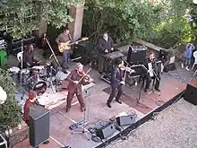 Les Yeux Noirs is the name of a French band combining elements of jazz manouche and other Romani music, Yiddish, and Klezmer music. The group was founded by two brothers, Eric and Olivier Slabiak, who both play violin. Other members of the band at its inception were: Franck Anastasio (double bass and electric bass), Georghe Ene (Accordion), Pascal Rondeau (guitar), and François Perchat (cello). Later, Aidje Tafial (drums) and Marian Miu (cymbalom) were added, and Georghe Ene was replaced on the accordion by Constantin Bitica.