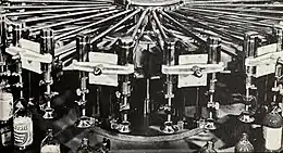 The headquarters of the Adell Chemical Company in Springdale, Holyoke, Massachusetts, c.1955; a bottling machine filling bottles of Lestoil