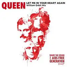 "Let Me in Your Heart Again" is a song by British rock band Queen. It was written by lead guitarist Brian May. It was intended for The Works but was not finished until 2014, when it was released on the compilation Queen Forever. To date, it is the last original Queen track to be released as a 12” maxi-single. The 12” maxi-single with the William Orbit remix is included as an extra in the Queen Forever 4 LP box set.