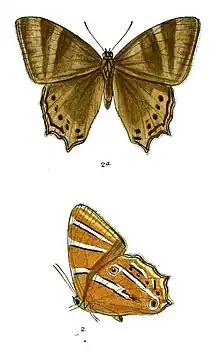 - ↑ Atkinson, 1871 Descriptions of three New Species of Diurnal Lepidoptera from Western Yunan collected by Dr. Anderson in 1868 Proc. zool. Soc. Lond. 1871 : 215-216, pl. 12