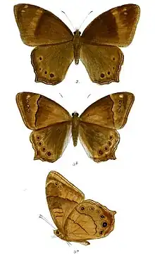 - ↑ Weymer, G. 1910-1911. 4. Familie: Satyridae. In: Seitz, A. (Ed.), Die Gross-Schmetterlinge der Erde. Stuttgart, A. Kernen. 5: 185-225.