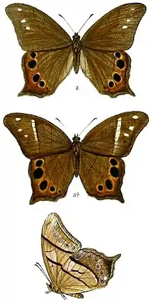 - ↑ Weymer, G. 1910-1911. 4. Familie: Satyridae. In: Seitz, A. (Ed.), Die Gross-Schmetterlinge der Erde. Stuttgart, A. Kernen. 5: 185-225.