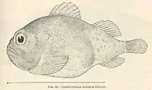 Lethotremus is a monospecific genus of marine ray-finned fish belonging to the family Cyclopteridae, the lumpfishes or lumpsuckers. This genus is found in the northern Pacific Ocean. Following a 2017 taxonomic review by Lee et al., the species Lethotremus awae was reclassified as a species of Eumicrotremus, leaving the genus monotypic with Lethotremus muticus as its only species.[1][2] Also known as the docked snailfish[3] (a somewhat misleading name as this species is not one of the true snailfish in the family Liparidae), is a species of lumpfish native to the Northeast Pacific. It is known from the Bering Sea and the Aleutian Islands, where its range extends to Unimak Pass, and it occurs at a depth range of 58 to 330 m (190 to 1082 ft). It is a benthic species that reaches 11.5 cm (4.5 inches) in total length. It can be found on substrates of mud, rock, or gravel, and it is currently the only known species of Lethotremus, following a reclassification of the second described species in the genus as Eumicrotremus awae.[4][5]