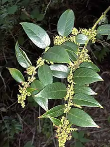 Leucothoe fontanesiana, also known as the highland doghobble,[1] fetter-bush,[2] mountain doghobble or switch ivy, is a species of flowering plant in the family Ericaceae, native to the southeastern United States. It is an erect evergreen shrub growing to 1–2 m (3–7 ft) tall by 3 m (10 ft) broad, with laurel-like glossy leaves 6–16 cm (2–6 in) long, and pendent axillary racemes of urn-shaped flowers in spring.[3][4]
