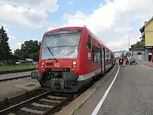 Leutkirch station is the station of the town of Leutkirch im Allgäu in the German state of Baden-Württemberg. It is classified by Deutsche Bahn as a category 5 station and has two platform tracks. The station is located on the network of the Bodensee-Oberschwaben Verkehrsverbund (Lake Constance-Upper Swabia Transport Association, bodo) and belongs to fare zone 68. The address of the station is Bahnhof 1.