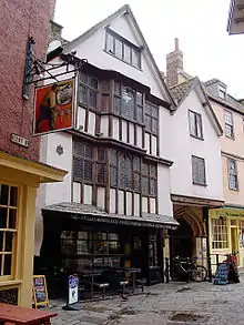 A thirteenth-century building in Lewin's Mead, Bristol, now a fish and chip shop.