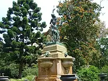 An elaborate drinking fountain was built in the Sydney Botanic Gardens in his memory by his family in 1889. It is made of polished red and white granite and features a bronze figure by sculptor Charles Bell Birch. It was unveiled by the Premier of New South Wales, Sir Henry Parkes, during a ceremony on 17 December 1889.[9]