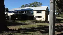 The school building has two classrooms used as one, an office, store and staff area. It is a high set timber building with gabled corrugated iron roof. The original classroom is lined with tongue and groove boards, and the newer areas are lined with fibrous cement sheet. To the west is an open verandah with racks for the children's school bags. There are timber stairs to the front and rear. To the east is a small landing with the original school bell. Underneath is mostly open with remnants of old school furniture.[1]