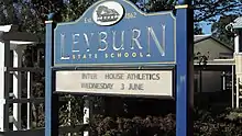 Leyburn is a rural village on the southern reaches of the Darling Downs, some 50 kilometres (31 mi) northwest of Warwick, on the banks of Canal Creek. The school grounds are sited on the western fringe of the township. The school building addresses Peter Street to the west, and nestled behind it beneath a canopy of camphor laurels is the playshed. To the south of the school building is the residence, to the north a demountable classroom block, to the east is the sports field and to the northeast is the tennis court, toilet block, swimming pool and change sheds. There are several silky oak trees to the eastern and western perimeters.[1]