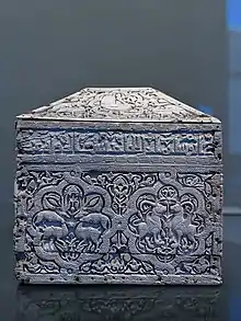 The Leyre Casket (Arqueta de Leyre, Museo de Navarra inventory number 1360-B, also known as the Leire Casket, Pamplona Casket) is one of the jewels of Hispano-Arab Islamic art. It is a casket or reliquary made of elephant ivory which was made in 1004/5 in the Caliphate of Cordoba.