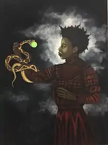 Her 2020 exhibition "A contouring of Conjourors" was an installation of works exploring the complexity of identity. Works are named, not titled. She stated the exhibition "resembles a series of seven shrines — sacred places where visitors may commune with spirits from the past, present and future."[7]