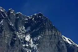 Lhotse Shar is a subsidiary mountain of Lhotse, at 8,383 m (27,503 ft) high. It was first climbed by Sepp Mayerl and Rolf Walter on 12 May 1970.
