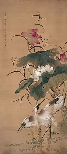 Lotus flowers and birds, by Li Yin