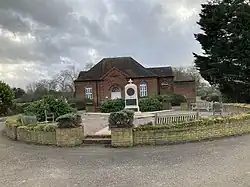 The cemetery's prayer hall, in Queen Anne Revival architectural style, was designed by Ernest Joseph and erected in the 1920s; it was extended in 1963.[1] Directly opposite the prayer hall is a Grade II listed war memorial, commemorating 22 people who died in the First World War. Historic England describe it as "one of very few freestanding First World War memorials which specifically commemorate Jewish service personnel". A plaque was added later to commemorate those who died in the Second World War.[3]