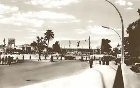 The area that became al-Tahrir Square was first established in 1937 during the Royal era where a roundabout was built.[8] The monument, known as Nasb al-Hurriyah is located here which celebrates Iraqi history by depicting key events leading up to the creation of a republic. The monument, designed by the leading Iraqi sculptor Jawad Saleem and architect, Rifat Chadirji, opened in 1961.[5] Al-Tahrir Square was the center of Baghdad while al-Rasheed Street was the main avenue of the city.[9]