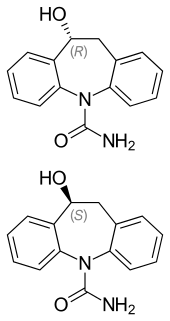 ![]() Top: (R)-(−)-licarbazepine Bottom: (S)-(+)-licarbazepine | |