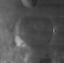 Lick is a lunar impact crater that has been flooded with basaltic lava. This crater was named in memory of James Lick, a Californian philanthropist.[1] The north rim is attached to the smaller, bowl-shaped crater Greaves. Lick lies on the southwest edge of Mare Crisium. Its rim is broken at the north and south ends, and the southwest rim is attached to the crater remnant Lick A. There is a small, flooded crater within the southern part of Lick's inner floor, and several tiny craters mark the interior surface. A small, unnamed crater at the east rim has a bright ray system.