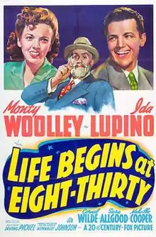 Life Begins at Eight-Thirty is a 1942 comedy-drama romance film starring Monty Woolley as a washed-up, alcoholic actor, Ida Lupino as his daughter, and Cornel Wilde as her boyfriend. It is based on the West End play The Light of Heart by Emlyn Williams.