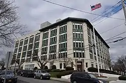 Life Savers Building is a historic commercial and industrial building located on North Main Street between Horton and Wilkins Avenues at Port Chester, Westchester County, New York. It was built in 1920 and expanded in 1948–1949. It served as a manufacturing facility and headquarters of the Life Savers Candy Company until 1984. It is five stories high and constructed of reinforced concrete, brick, and terra cotta. It features larger-than-life replicas of Life Savers rolls at the foundation line.[2] During its peak period of production in the 1960s, as many as 616 million rolls of Life Savers candy were produced each year in the facility. It was converted into a condominium complex in 1989.[3]