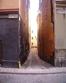 1. "Innerstaden: Gamla stan". Stockholms gatunamn (2nd ed.). Stockholm: Kommittén för Stockholmsforskning. 1992. p. 60. ISBN 91-7031-042-4.