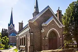 By the 1870s, planning was underway for a new, much larger church for the growing town of Lillehammer. A new brick long church was built alongside the old church in 1881–1882, roughly on the same site as the old stave church which was torn down in 1733. The new building was constructed in a neo-Gothic style and it was designed by the architect Henrik Thrap-Meyer.[1] The new building was consecrated on 14 June 1882.[3][4]