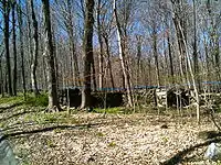 In 1872 the Shepaug, Litchfield and Northern Railroad (also known as the "Great Northern") from Bethel, Connecticut (by way of Hawleyville) ran track along Pond Brook to a Housatonic River bridge north to the Shepaug Valley (from which it wended a path to Litchfield, Connecticut).[4] The New York, New Haven and Hartford Railroad (AKA "The New Haven") leased the 32 mile long Shepaug line from 1892 to 1947. A twice-daily passenger service was discontinued in the 1930s and the line was completely shut down in 1948 at the request of the New York, New Haven and Hartford Railroad.[5]