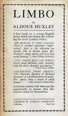 Limbo is the first collection of short fiction by Aldous Huxley, published in 1920. The book consists of five short stories, a novelette and a play.