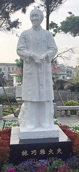 Lin Qiaozhi or Kha-Ti Lim (Chinese: 林巧稚; pinyin: Lín Qiǎozhì; Pe̍h-ōe-jī: Lîm Khá-tī; December 23, 1901 – April 22, 1983) was a Chinese obstetrician and gynecologist at the Peking Union Medical College Hospital. She conducted research in the fields of fetal breathing, female pelvic diseases, gynecologic oncology and neonatal hemolytic disorders.[1][2][3] She revolutionized modern Chinese gynecology and oncology. As an obstetrician, she delivered over 50,000 babies in her career. She never married or had children of her own, but always wrote "Lin Qiaozhi's Baby" on the newborns' name tags, resulting in her being nicknamed "Mother of Ten Thousand Babies (万婴之母)" . She died in Beijing on April 23, 1983.[4]