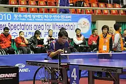 Lin Yen-hung (Chinese: 林晏弘, born 5 March 1958[5]) is a Taiwanese para table tennis player. He won a silver medal at the 2000 Summer Paralympics, and another silver at the 2016 Summer Paralympics at age 58.