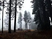 As the name suggests, Lincoln Heights is located on the slopes and crest of Spokane's South Hill area, the local name for the broader southern side of the city. The slopes rise from the Spokane Valley below to the elevation of the Columbia Plateau. In places, like in Lincoln Park, the slope is so steep that it exists as vertical faces of exposed Columbia River Basalt Group rock cliffs.[7] The neighborhood rises from approximately 2,000 feet in the north to 2,300 feet in the south.[8][9]