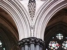 The Lincoln Imp is a grotesque on a wall inside Lincoln Cathedral, England, and it has become the symbol of the city of Lincoln.[1][2] A legend tells of it being a creature sent to the cathedral by Satan, only to be turned into stone by an angel.