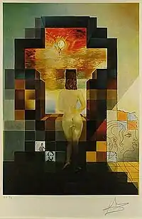 Lincoln in Dalivision is a 1977 original limited edition lithograph created by Salvador Dalí. It is often considered one of the most counterfeited Dalí lithographs.[1][2] Dalí authentication experts who have noted the counterfeiting issue with this work include Albert Field (The Official Catalog of Graphic Works of Salvador Dalí – authorized by Dalí),[3] Frank Hunter (Dalí Archives – authorized by Dalí),[4] Robert Descharnes (French photographer, long-term friend and associate of Salvador Dalí)[5] and Bernard Ewell (Bernard Ewell Art Appraisals, LLC).[6] Lee Catterall comments in his book The Great Dalí Art Fraud & other deceptions, "The painting most commonly reproduced for such fraudulent purposes was Lincoln in Dalivision, 'prints' of which Los Angeles art appraiser Dena Hall testified in the Hawaii trial have become as commonplace as 'pancakes at the pancake house.'"[1][7]