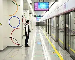 Line 5 of the Fuzhou Metro (Chinese: 福州地铁5号线; pinyin: Fúzhōu Dìtiě Wǔ Hào Xiàn) is a metro line in Fuzhou. It starts at Jingxi Houyu and as of February 2023, ends at Ancient Luozhou Town, with a total length of 22.4 km (13.9 mi).[1] The line opened on 29 April 2022.[1] The opening of a further section from Ancient Luozhou Town to Fuzhou South railway station, which will extend the line's length to 27.7 km (17.2 mi), was delayed due to the delay of the reconstruction of the train station for the Fuzhou–Xiamen high-speed railway, which is expected to re-open in the second half of 2023.[2] Line 5's color is purple.