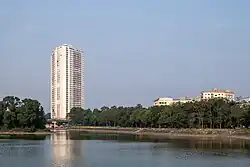Linh Đàm is a neighborhood located in Hoàng Mai district, Hanoi. With a population of about 80,000 people, Linh Đàm is among the most densely populated neighborhoods in Vietnam. First settled in around the early 1600s, the area was mostly a swamp and sparsely-populated area until the early 1990s, when it was planned to relieve overpopulation in the urban core of Hanoi. The neighborhood is characterized by tall buildings and the Linh Đàm lake serving the community.