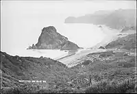 The traditional name for the rock is Te Piha, and is a name that was applied to the wider area.[5] The name Te Piha came from the pattern made when waves hit against the rock.[6] Lion Rock is in the rohe of Te Kawerau ā Maki, and was the location of island pā known as Whakaari,[7] which literally means "exposed to view" or "display".[8] The pā was captured by a Ngāti Whātua war party led by Tainui warrior Kāwharu around the year 1700.[7]