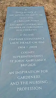 On 15 May 1929 he married Daphne Constance Price, daughter of Montagu W. Price, Chairman of the London Stock Exchange and through her mother, a niece of Edith Villiers, Countess of Lytton. They lived at Chilworth Manor, Surrey. Lady Heald trained at the Queen's Nursing Institute prior to her marriage and from 1950 became vice-president of the Royal College of Nursing. She was chairman of the National Gardens Scheme from 1951 to 1979, and opened the gardens at Chilworth for fundraising events for Marie Curie Cancer Care and other medical charities. She was appointed CBE in 1976. Lady Heald died on 14 August 2004, aged 99.[3]