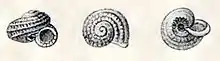 The size of the shell varies between 5 mm and 15 mm. The whitish shell has a depressed turbinate shape. It is spirally costate, with the costae slightly tuberculate above. The suture is channeled. The outer lip is crenately varicose. The large umbilicus is bicarinate within and crenulately margined.[2]