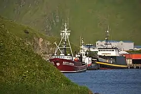 Pollock fishing vessels in an Alaskan port.
