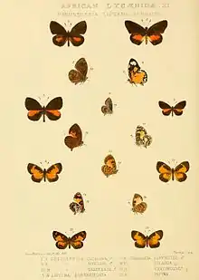 - ↑ Afrotropical Butterflies: Lycaenidae - Subtribe Liptenina