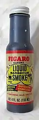 Water is added either during condensation or after to cause separation of three fractions.[11] Once water is added, the aqueous phase becomes the largest and most useful fraction. It contains wood-derived chemical compounds of higher chemical polarity such as those found in carboxylic acid, aldehyde, and phenol chemical classes. Many compounds together are responsible for the flavor, browning, antioxidant, and antimicrobial effects of smoke and liquid smoke. The smallest condensed fraction is the lowest-polarity upper phase which a mix of phytosterols and other oily, waxy substances. The lower phase is commonly referred to as tar. It is an intermediate-polarity mixture of phenolic polymers, secondary and tertiary reaction products,[12] some of the water-soluble polar compounds partitioned in the amount of which is governed by individual partition coefficients, water and the bulk of the polycyclic aromatic hydrocarbons. Wood tar has been used as a preservative, water repellent, and antiseptic. Tar from birch was produced as a commodity product on large scale in northern Europe. Today commercial liquid smoke products are still prepared from this phase.[13] Liquid smoke condensates are made commercially for the global meat industry in the U.S. and Europe and are regulated by governments. Liquid smoke is still referred to as wood vinegar, and is made and used indigenously in places including Japan, China, Indonesia, Malaysia, Brazil, and Southeast Asia.[14]