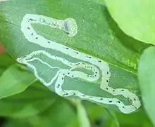 | Leaf mines caused by Liriomyza commelinae larvae | |