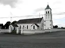 - Saint Patrick’s Roman Catholic Chapel and graveyard. Although it is called Aghawillan Church, it is actually situated in Lisroughty. It was erected c.1830 to replace an old thatched chapel in Corramahan. The new one was also thatched, measuring 74 ft by 24 ft by 9 ft. It had a clay floor and the congregation had to bring a flat stone to Mass to kneel on as the floor was wet. In the 19th century the murderer of Captain McLeod hid his gun in the church.[18] The present chapel was erected in 1869 by Fr. Patrick Galligan, at a right angle to the location of the old one. Improvements were made in 1935.[19] It was rededicated after renovations on 12 October 1952. The novelist John McGahern is buried in the graveyard.[20][21]