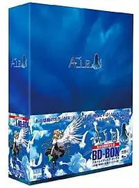 A DVD released on March 31, 2005 called "Air Memories" contained promotional commercials for the series, staff commentaries, and clean ending sequences from the twelfth and thirteenth episodes, lasting ninety-two minutes in total.[2] The episodes were released to six Region 2 DVDs between April 6 and September 7, 2005 by Pony Canyon in limited and regular editions containing two episodes per volume. A single DVD volume for Air in Summer was released on October 5, 2005 in Japan in limited and regular editions. Additionally, Air became one of the first anime series to be released in Blu-ray Disc format on December 22, 2006.[3][4] A new version of the Blu-ray Disc box set was released on November 28, 2008 in Japan.