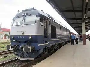 The diesel electric locomotives employed by CFR and built by Electroputere Craiova are known as classes 60 to 68 and originally registered under the series 060-DA. They were based on a design created by SLM Winterthur, BBC Baden and Sulzer Winterthur and bears, externally, resemblance to AE 6/6 Swiss electric locomotives.[1] New diesel modernised (post-1999) locomotives are painted in blue livery, while older ones have grey livery.[2][3]