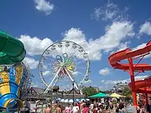 New this year is the Flying Falcon ride, where 28 gondolas soar 105 feet into the sky, a new video arcade building, and several new kiddie rides.