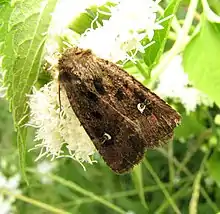 Agrotis ipsilon[6] | Dark sword-grass Black cutworm Greasy cutworm Floodplain cutworm Ipsilon dart |